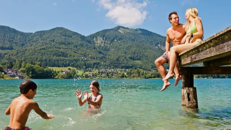 Genießen Sie erholsame und spaßige Stunden am Ufer des strahlenden Fuschlsees.